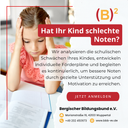 Bergischer Bildungsbund e.V. bietet individuelle Unterstützung für Kinder mit schwachen Noten. Wir analysieren die schulischen Schwächen Ihres Kindes und entwickeln maßgeschneiderte Förderpläne. Gemeinsam arbeiten wir daran, bessere Noten durch gezielte Unterstützung und Motivation zu erreichen. Melden Sie sich jetzt an und geben Sie Ihrem Kind die Chance auf einen erfolgreichen Schulweg! Adresse: Morianstraße 16, 42103 Wuppertal Telefon: +49 202 450973 Website: www.bbb-ev.de